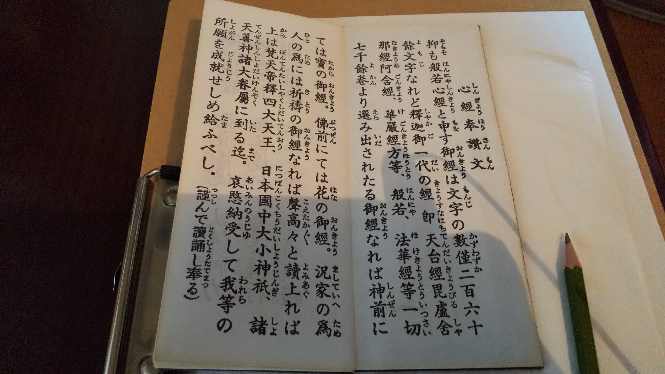 私は筆圧が強いので、写経を十枚書くとシャープペンが壊れるのでえんぴつです。